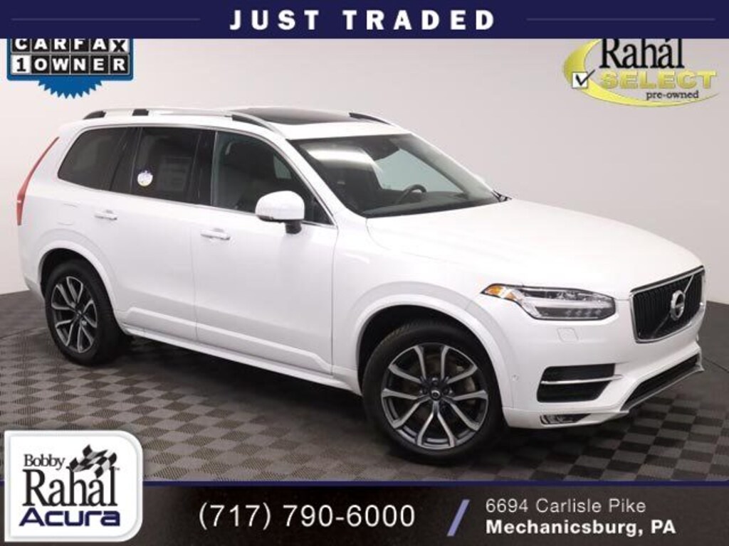 AWD, Charcoal Leather. See why Bobby Rahal Acura is the Largest Certified Acura Dealership in Central PA! Recent Arrival! CARFAX One-Owner. Crystal White Pearl 2019 Volvo XC90 T6 Momentum AWD 19/26 City/Highway MPG